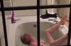 Peeping Tom caught slut having fun in the bathtub.mp4