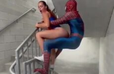 Spider-Man and spider woman having fun in the stairwell.mp4