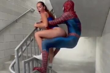 Spider-Man and spider woman having fun in the stairwell.mp4